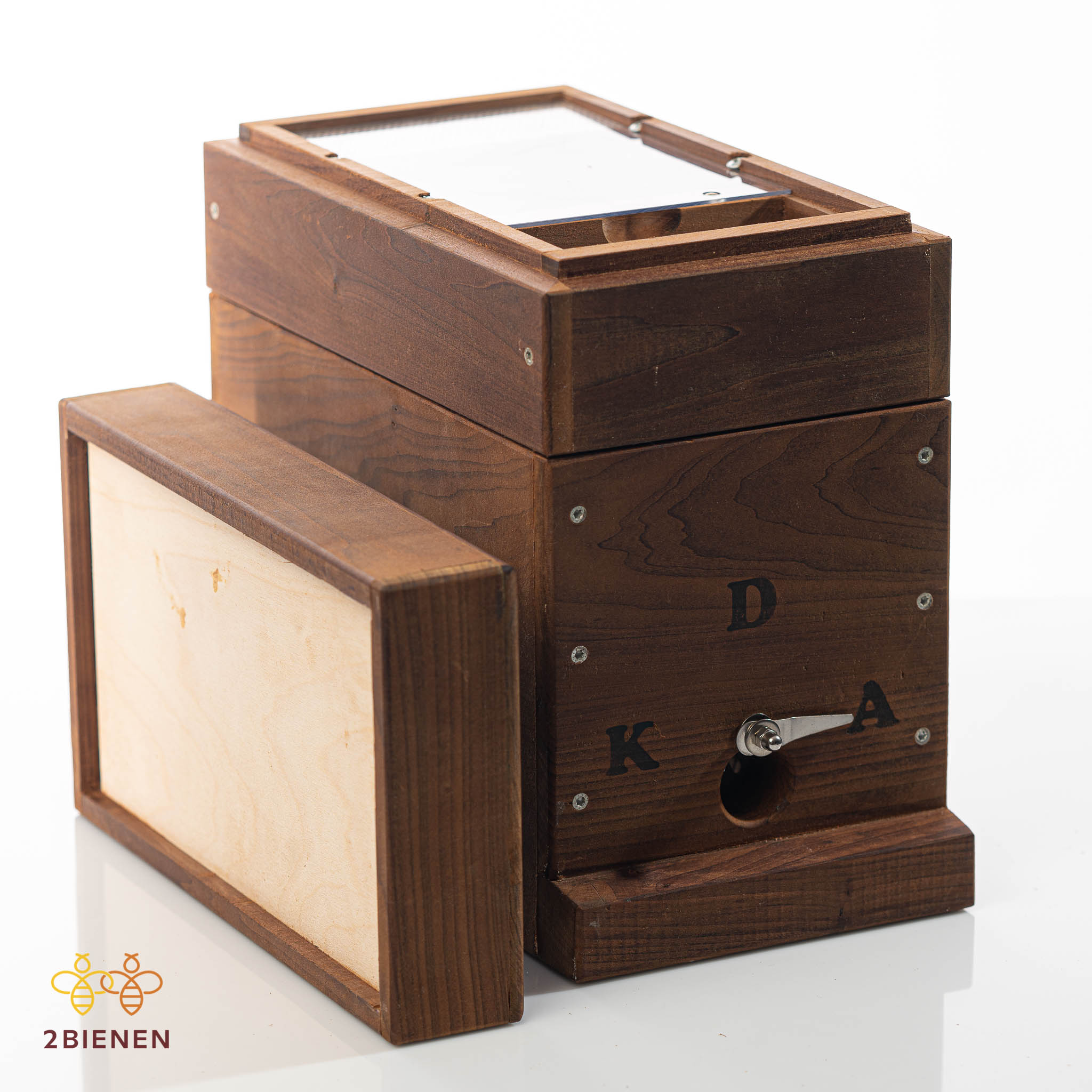 - Fütterer für Teig, inkl. Fach für die Aufbewahrung der gekäfigten Königinn für die künstliche Besamung