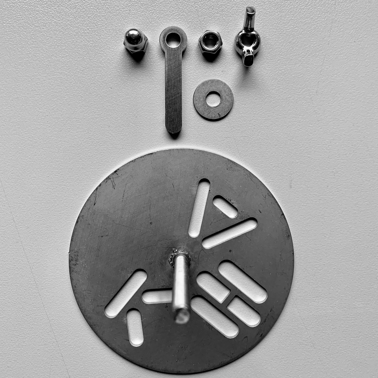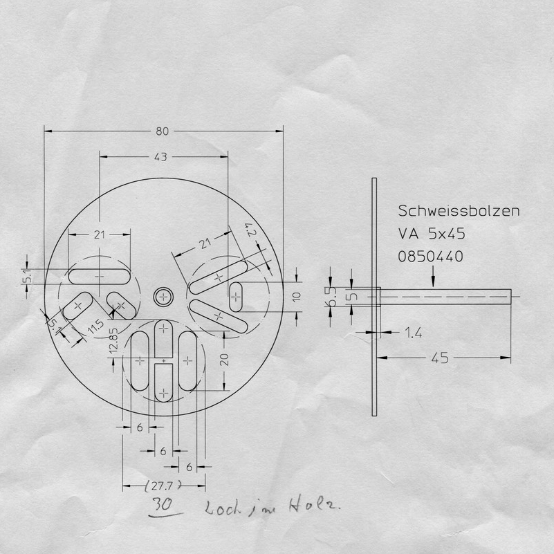 80 mm Durchmesser, 45 mm Gewindestange, inkl. Unterlegscheibe, Flügelmutter und Mutter. s. Produktgalerie.