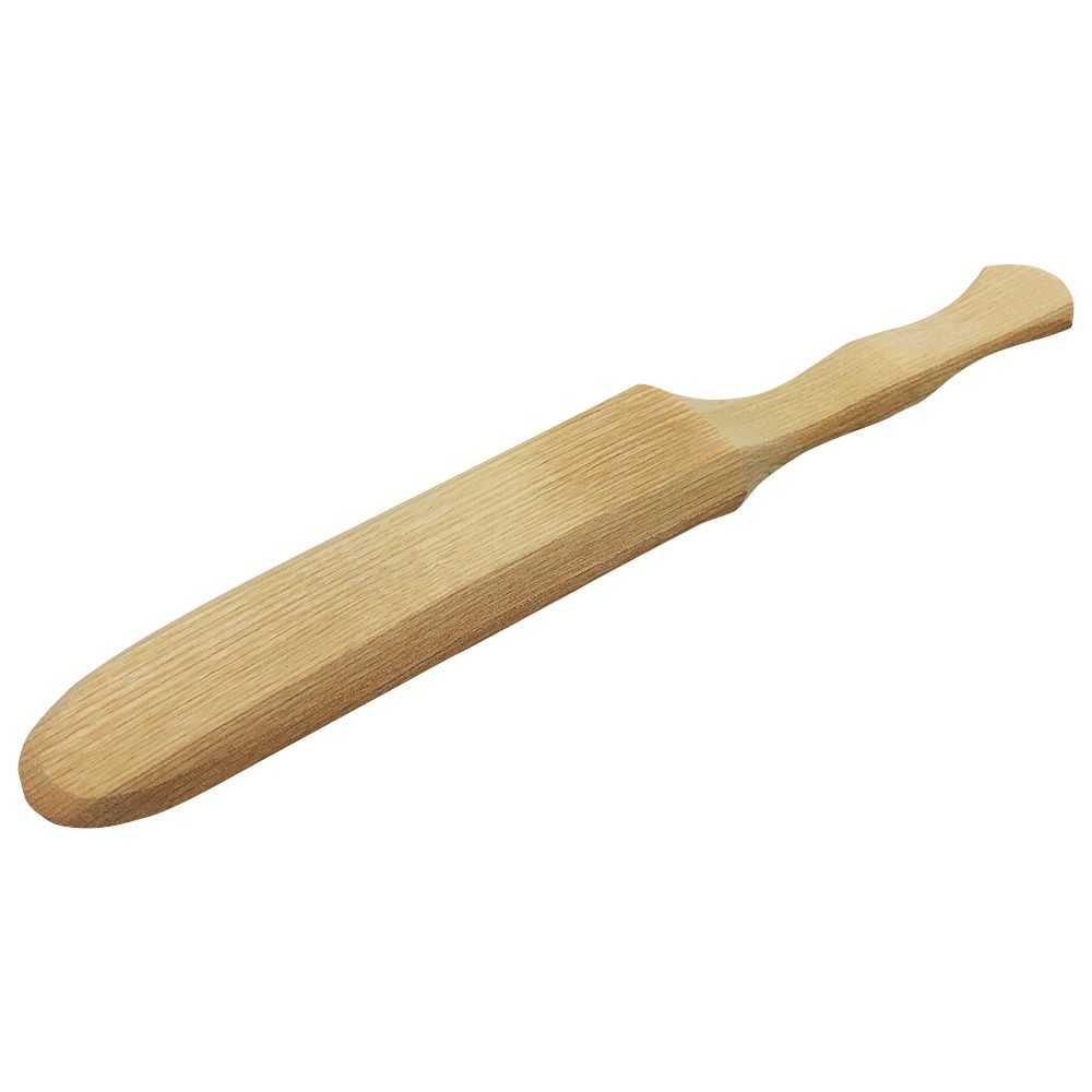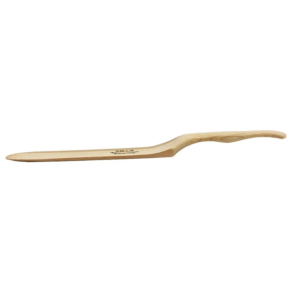 Ergonomisch geformter Honigspachtel aus Holz.